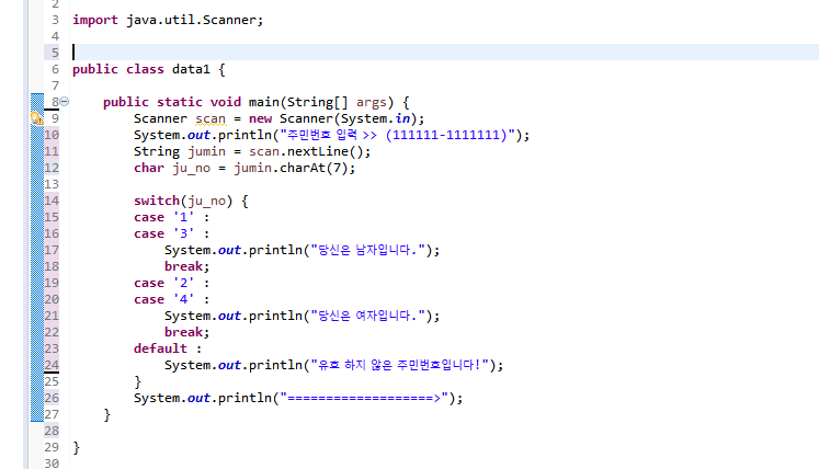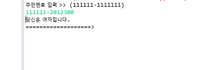 => ์ฒซ๋ฌธ์๋ฅผ 0๋ถํฐ ์์ํด์ 7๋ฒ์งธ ์ฃผ๋ฏผ๋ฒํธ ๋ท์๋ฆฌ ์ฒซ๋ฒ์งธ ๋จ์ผ๋ฌธ์ ๋ฒํธ๊ฐ์ ๊ตฌํจ.