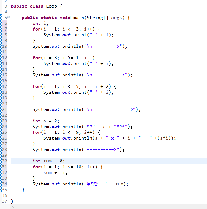 for(์ด๊ธฐ์น;์กฐ๊ฑด์;์ฆ๊ฐ์) {