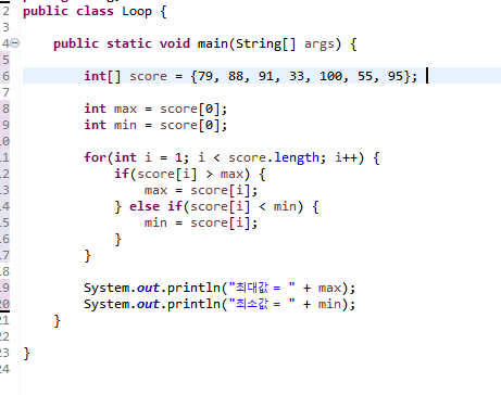 int[] score = {79, 88, 91, 33, 100, 55, 95};